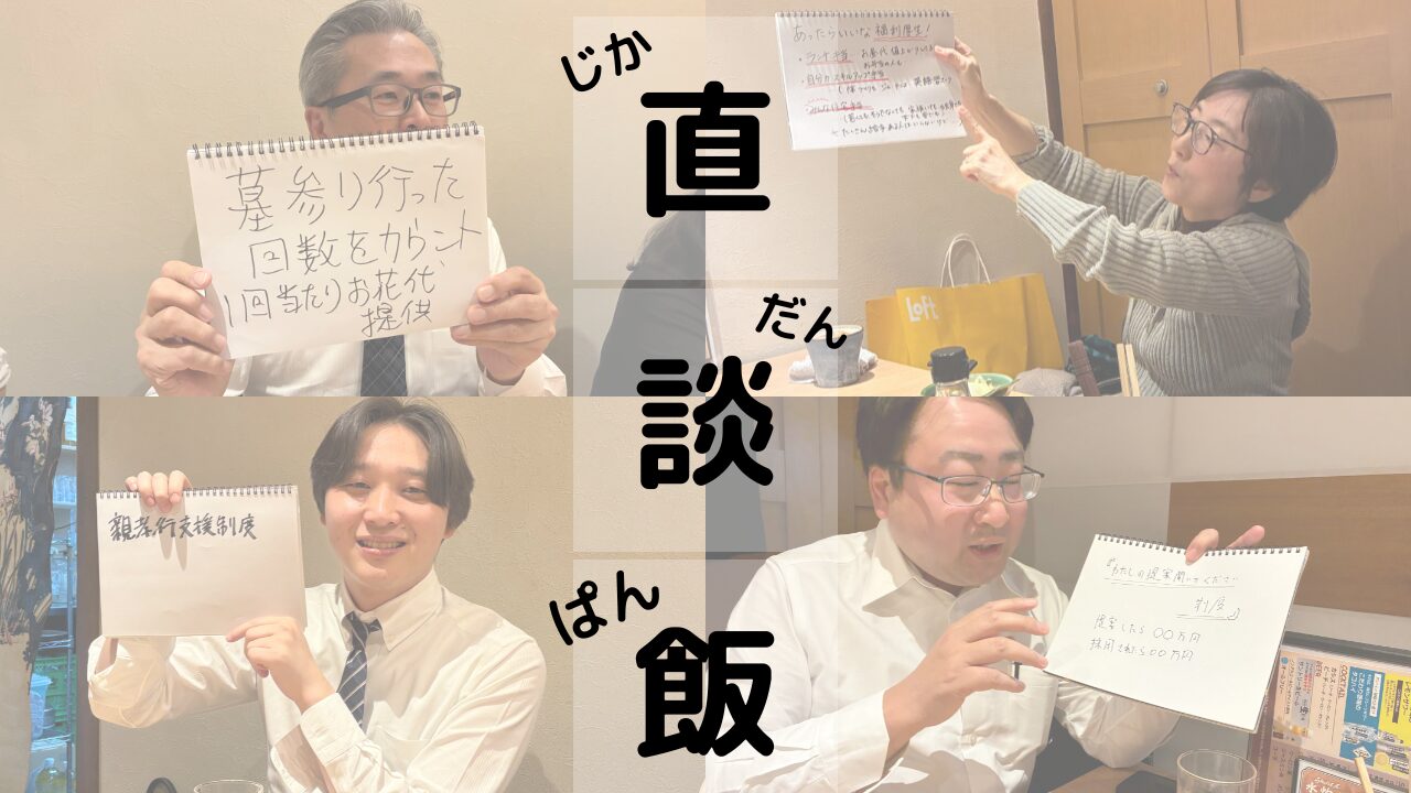 受ける側にとっても、トップ保険全員の人柄や働き方を見ることができるので、いい仕組みだとおもっております。(「すごく緊張するけど、いろんな人の話が聞けてよかった!」と若手社員も言っていました。)