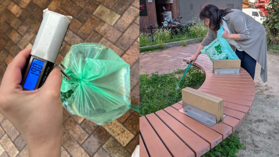 ゴミ拾いの時は、毎回このように重さを量っています↑↑↑