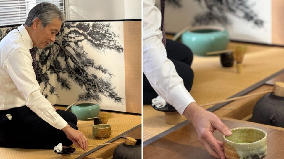 そして今年も、社長自ら抹茶をたててくださいました。こんな会社、なかなかないですよね!まろやかで濃厚な味わいの抹茶は、甘いぜんざいとの相性も抜群。