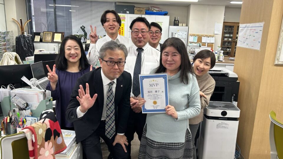 1月のMVPは福田さんでした!!サービス部の担当のお客様の満期対応や新規の見積もり対応の完璧さが輝いていました✨ いつも周りを見て、みんなのサポートをしてくださり、ありがとうございますっっ😊