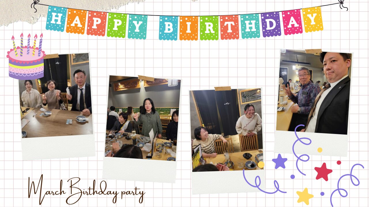3月お誕生日会は「小倉焼鳥 三鳥」で開催しました✨ 今月は、社長 野嶋、前田さん、瀬井さんがお誕生月です! 特別ゲストの松石さんもお誕生月で、盛大にお祝いしました🎂